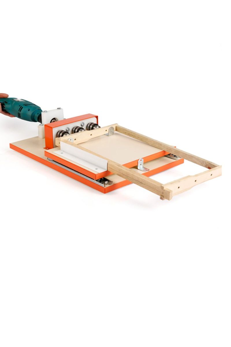 Устройство за пробиване 3 отвора на пчелни рамки с помощта на бормашина.