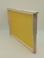 Хоризонтално обтелени рамки с уширение, изработени от липа с монтирани восъчни основи на ПЧЕЛА 2010 Горна Оряховица.