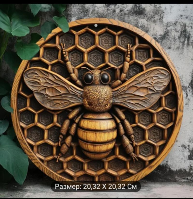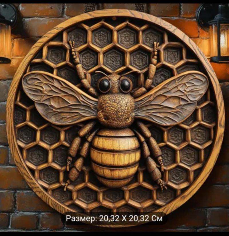 Винтидж Алуминиева стенна декорация 3D с пчела, 20.32x20.32 см за стена.