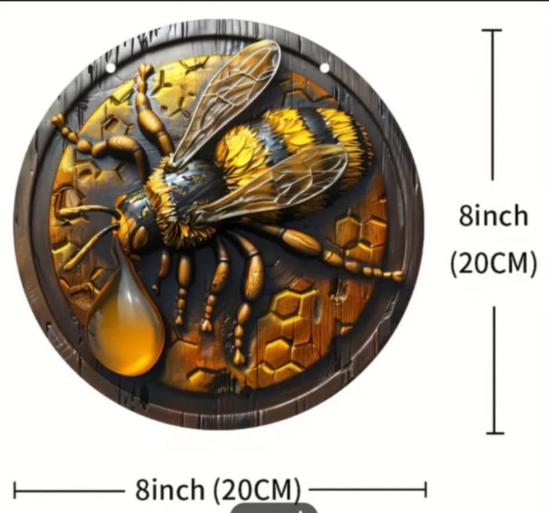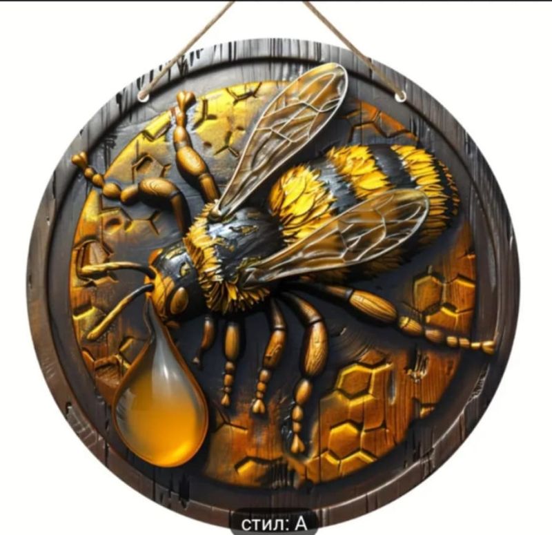 Винтидж дървена стенна декорация 3D с пчела, 20.32x20.32 см за стена.